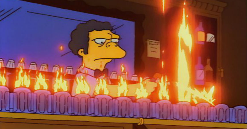 Por supuesto, el más representativo de estos cócteles es el «Llamarada Homero» o «Llamarada Moe», el icónico brebaje inflamable que el calvo protagonista inventó por accidente y luego le fue robado por su amigo de la taberna.