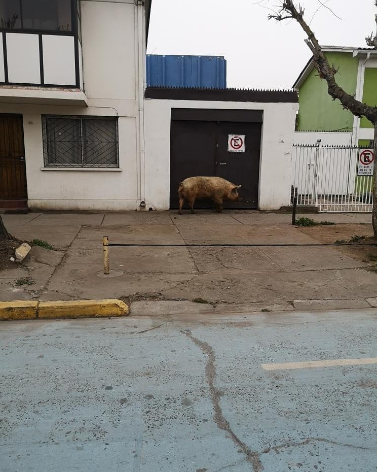 Según contaron los vecinos, el chanchito había recorrido varias calles de la comuna, situación que les hizo alertar a la Municipalidad para que tomaran cartas en el asunto.