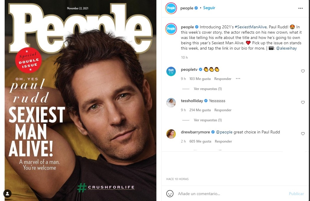 Este viernes será publicada la edición especial de la Revista People, Paul Rudd habla sobre como se tomó esta especial coronación. “Soy lo suficientemente consciente como para saber que cuando la gente se entere de que me han elegido para esto dirán ‘¿Qué?’”, afirmó. “No es falsa humildad. Hay mucha gente que debería recibirlo antes que yo”.
