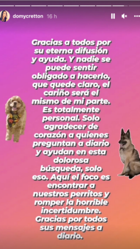 Momentos de incertidumbre vivió Dominique Cretton, hermana de Jean Philippe Cretton luego de pedir desesperada ayuda para encontrar a sus mascotas Danke y Thiare. Pero no todos fueron tan solidarios con la chiquilla, especialmente Pamela Díaz.