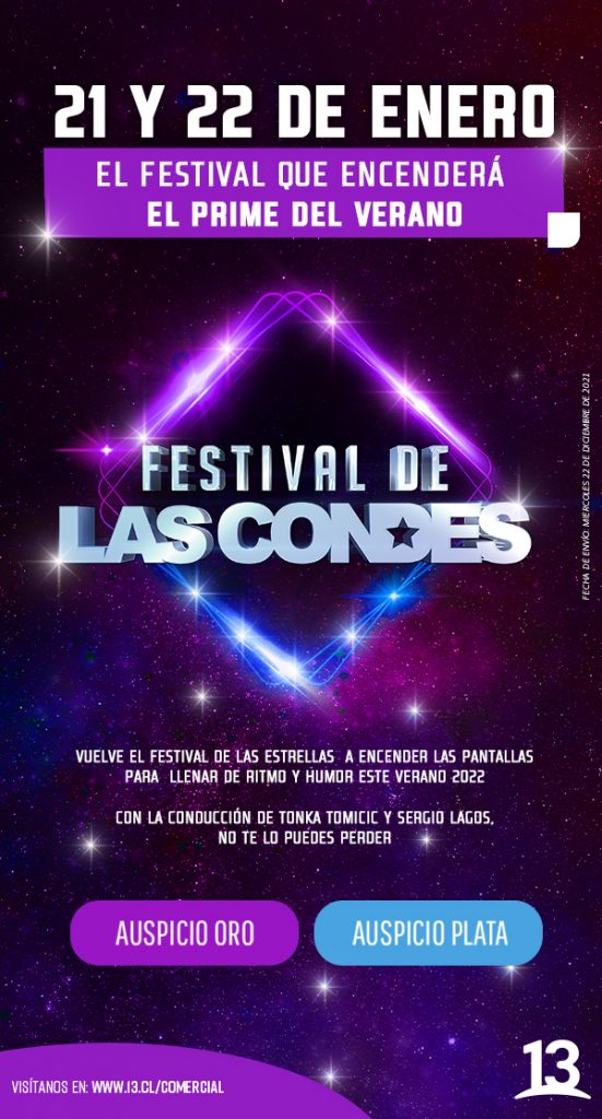 La información, que se entregó a través de una imagen donde se invita a las marcas a ser parte de los auspicios del Festival de Las Condes está disponible en la web de Canal 13.