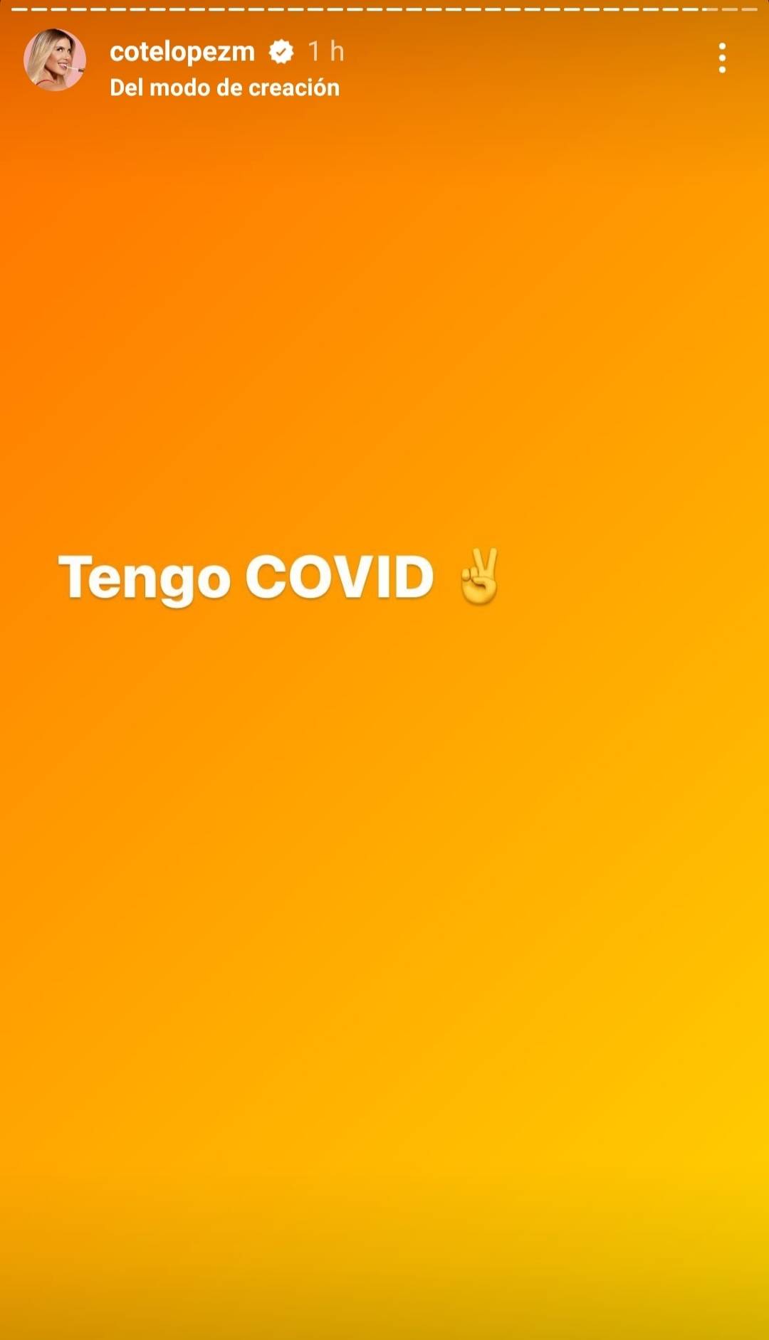 Y finalmente llegó el momento, donde Coté López confirmó su contagio pero obviamente fiel a su estilo bromista. «Tengo COVID. Toso porque tengo Covid, cof, cof! La w… pesá. Ya si es broma oh! No seguiré hablando de la palabra que empieza con CO y termina con VID… Atte. La contagiada de COVID», señaló la empresaria nacional a través del mismo medio como siempre; tirando la talla.