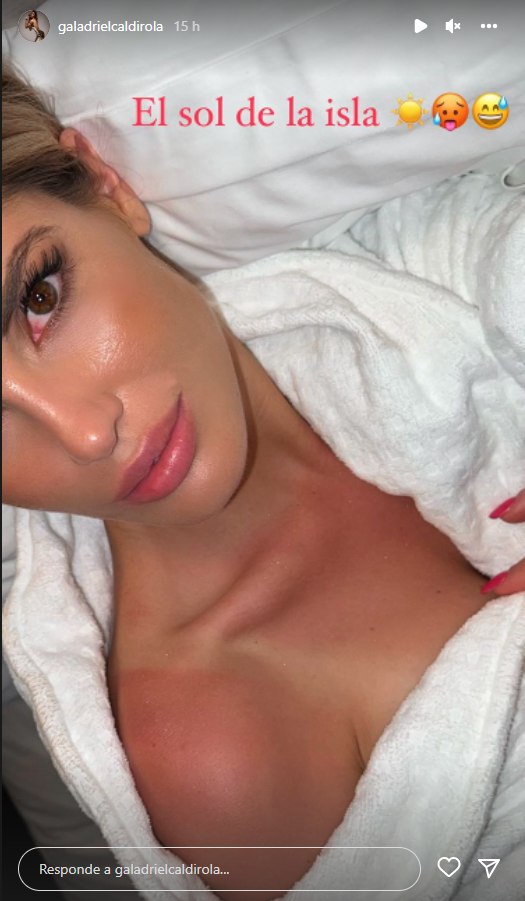«El sol de isla», señaló también la modelo española a través de sus historias de Instagram, donde muestras las consecuencias de su día disfrutando el sol de la playa.