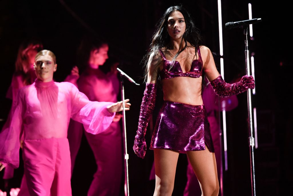 Durante uno de sus últimas presentaciones, Dua Lipa dijo presente en el Sunny Hill Festival de su querida Kosovo. Allí apostó por una minifalda con abertura y un top fucsia, acompañado por guantes largos y botines.