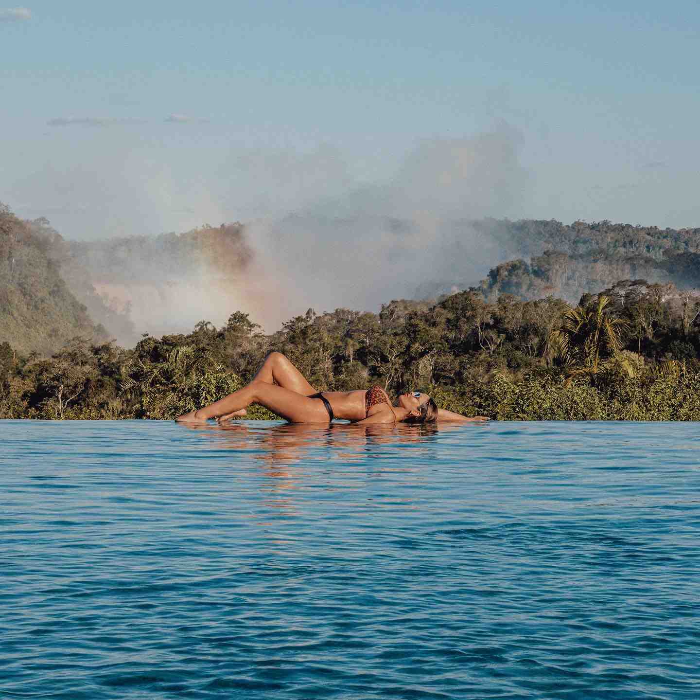 La chiquilla pescó sus pilchas se fue a disfrutar al Parque Nacional «Gran Melia Iguazú. Y, claramente, visitó las conocidas «Cataratas» de la provincia de Misiones, Argentinas.