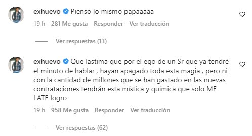Siguiendo por esta línea, agregó que: «Qué lástima que por el ego de un señor que ya tendré el minuto de hablar, hayan apagado toda esta magia. Pero ni con la cantidad de millones que se han gastado en las nuevas contrataciones tendrán esta mística y química que solo Me Late logró».