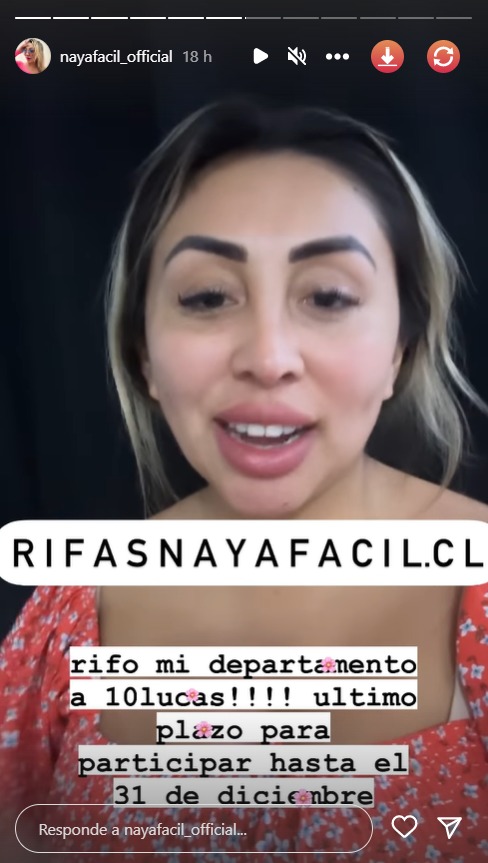 Aunque la misma influencer aclaró durante la noche del pasado martes que finalmente el sorteo iba, pero en el último día del 2022. «Rifo mi departamento a 10lucas!!!! Último plazo para participar, hasta el 31 de diciembre», señaló Naya Fácil a través de sus historias de Instagram.