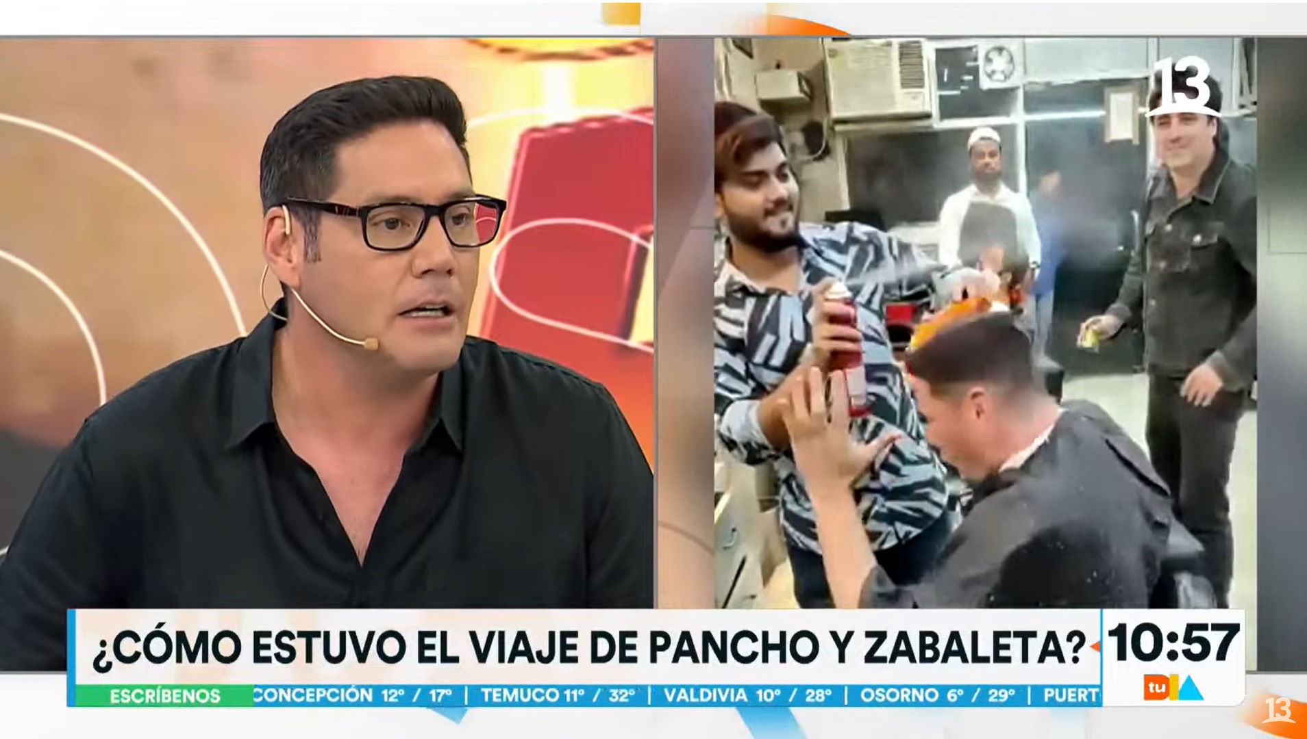 «Si po, en India, ¿te acordai’?», respondió Pancho Saavedra dirigiéndose a Jorge Zabaleta. «Lo que pasa es que yo me empiezo a dejar crecer el pelo y como yo soy medio crespo…», explicó de entrada el animador de «Lugares Que Hablan» antes de darse cuenta que el video del momento estaba apareciendo en pantalla.