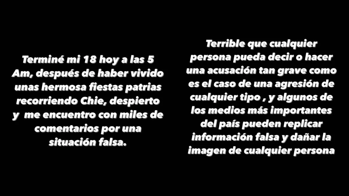 «Terminé mi 18 hoy a las 5 am, después de haber vivido unas hermosas fiestas patrias recorriendo Chile, despierto y me encuentro con miles de comentarios por una situación falsa», inició Héctor Muñoz a través de su cuenta.