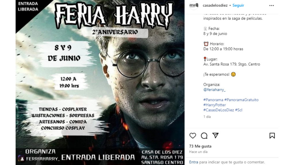 Se trata de una feria temática en donde todo girará alrededor de la famosa saga de libros y películas de Harry Potter. Un tremendo panorama para todos los fanáticos de todas las edades que quieran disfrutar de un fin de semana diferente.