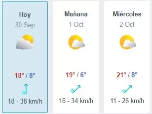 De acuerdo al pronóstico del tiempo en Santiago de Meteored, se espera que hoy, lunes 30 de septiembre, la temperatura máxima llegue a 18 grados.