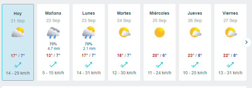 Por otro lado, el inicio de semana sería con una máxima de 17 y una mínima de 7 grados.