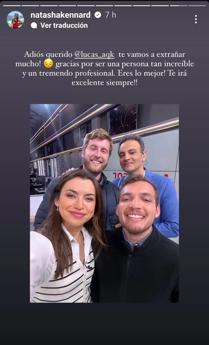«Adiós querido Lucas, te vamos extrañar mucho, gracias por ser una persona tan increíble y un tremendo profesional. Eres lo mejor, te irá excelente siempre», expresó.