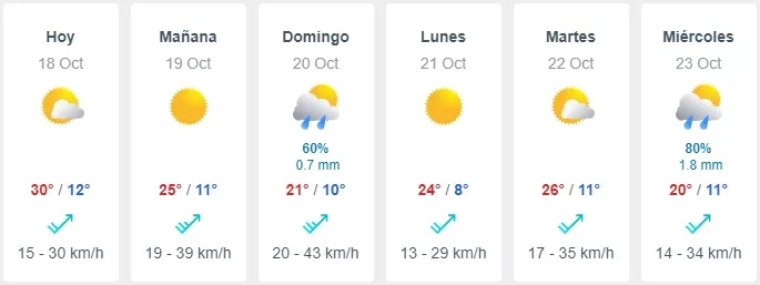 Además, según Meteored, para el domingo 20 de octubre, se espera una temperatura máxima de 21 grados y una mínima de 10 grados.