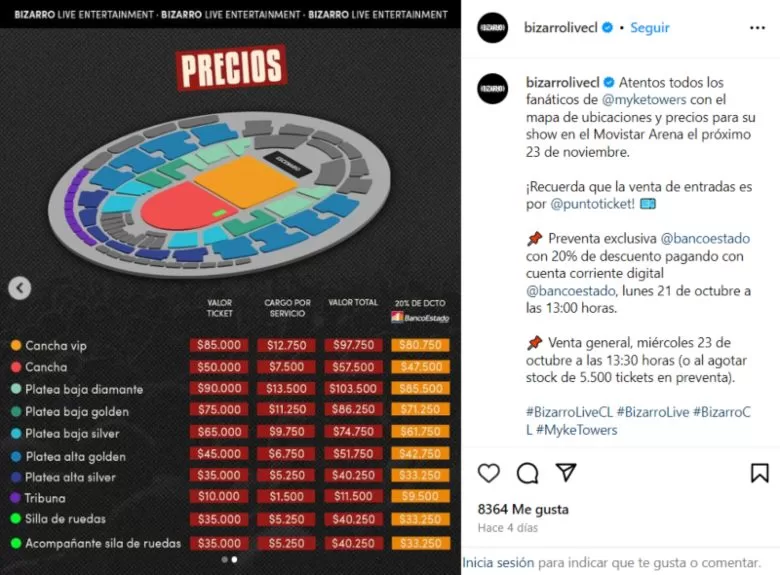 Es importante señalar que desde la productora Bizarro, dio a conocer los precios que tendrán las entradas para el concierto de Myke Towers en Chile.