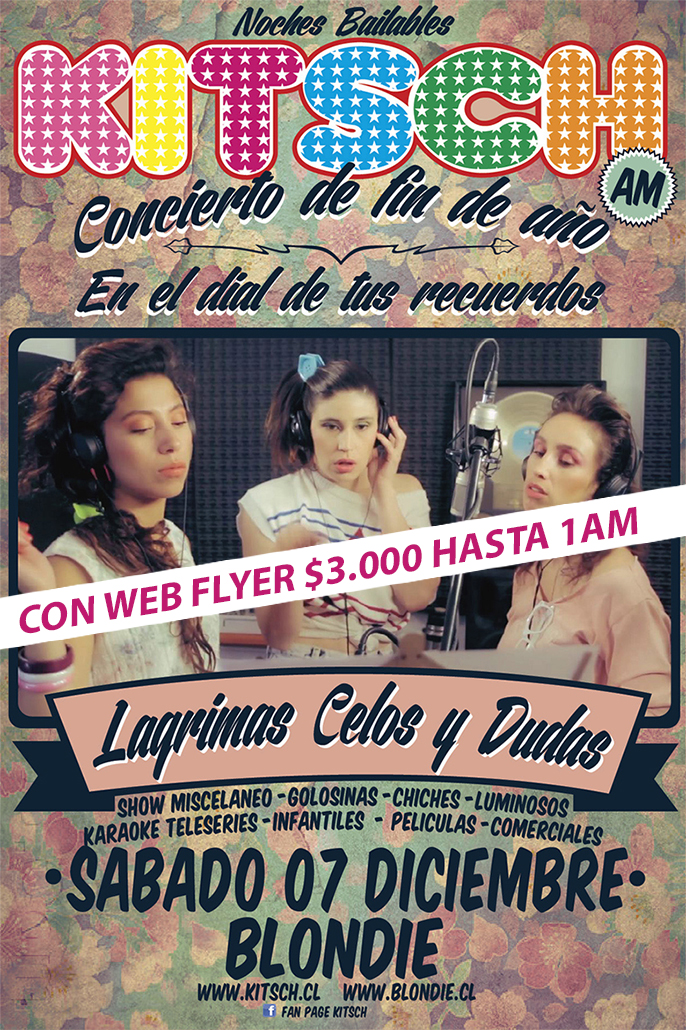 Radioactivo, hoy se viene una nueva edición de las fiestas Kitsch en la Blondie: un mega Especial AM!!! Clásicos de Luis Miguel, Camilo Sesto, Rafaella Carrá y una programación de placeres culpables que te hará bailar y cantar!!! La entrada general tiene un valor de 5 mil pesos… No te lo pierdas, radioactivo!!!