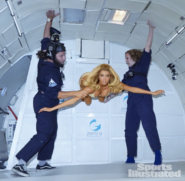 Sports Illustrated tuvo una idea maravillosa: Demostrar cómo funciona la gravedad, poniendo Kate Upton en bikini y haciéndola volar.