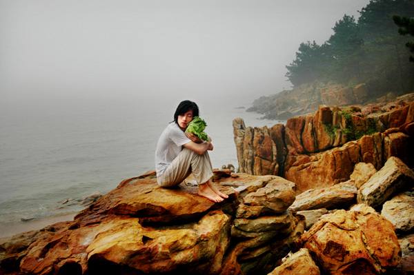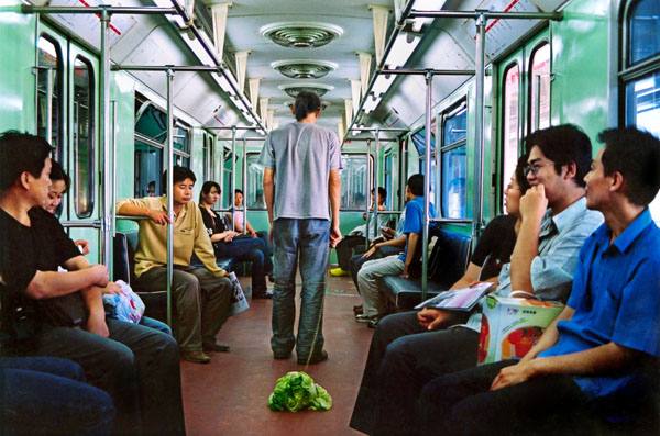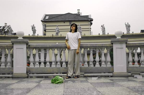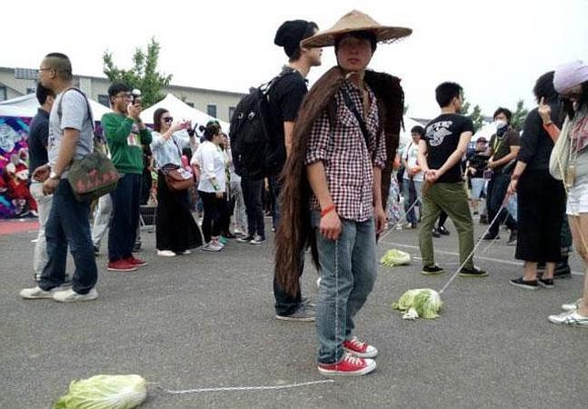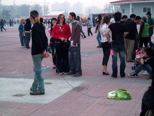 Las fotos del artista Han Bing están causando sensación en China. Y todo porque en ellas aparecen jóvenes paseando verduras, a las que atan y arrastran como si fueran mascotas.