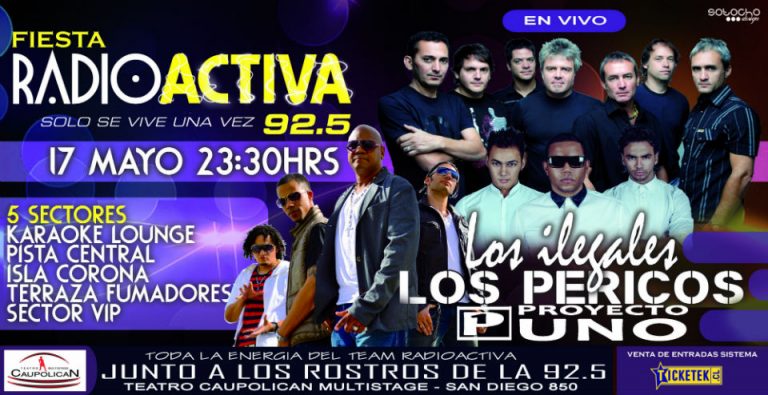 No te pierdas a Los Pericos, Ilegales, Proyecto Uno, y por supuesto todo el Team RadioActiva.