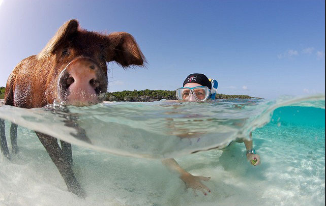 Por si a alguien no le parece suficientemente exótico viajar al Caribe para bucear con tortugas marinas o nadar con delfines, en las Bahamas se ofrece como atractivo turístico la opción de bañarse con cerdos.