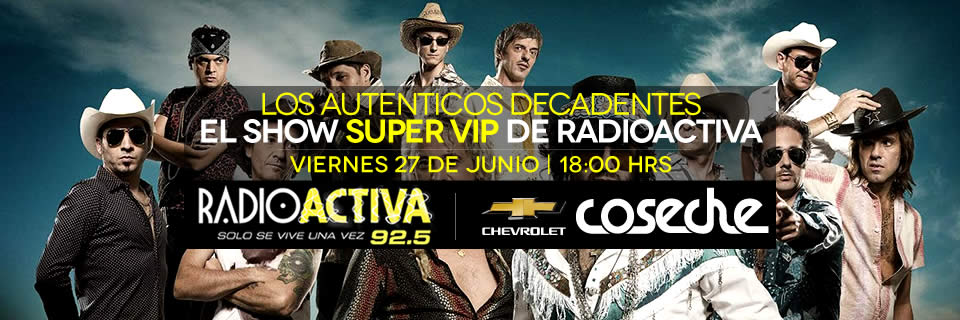 Porque sabemos que son uno de los favoritos de los fanáticos de la 92.5 y que han sido la banda sonora de tus mejores fiestas, RadioActiva quiere que seas parte de un exclusivo show este Viernes 27 a las 18:00, en el Teatro UDLA, de la banda argentina Los Auténticos Decadentes, en que por supuesto no faltarán éxitos como “Loco (tu forma de ser)”, “Entregá el marrón”, “La guitarra”, “Cómo me voy a olvidar”, “El Murguero”, “Los piratas” y su nuevo single “Y la banda sigue”, con el que nos adelantarán lo que será su próximo disco de estudio, el número 10 de su carrera, que será lanzado mundialmente en septiembre.