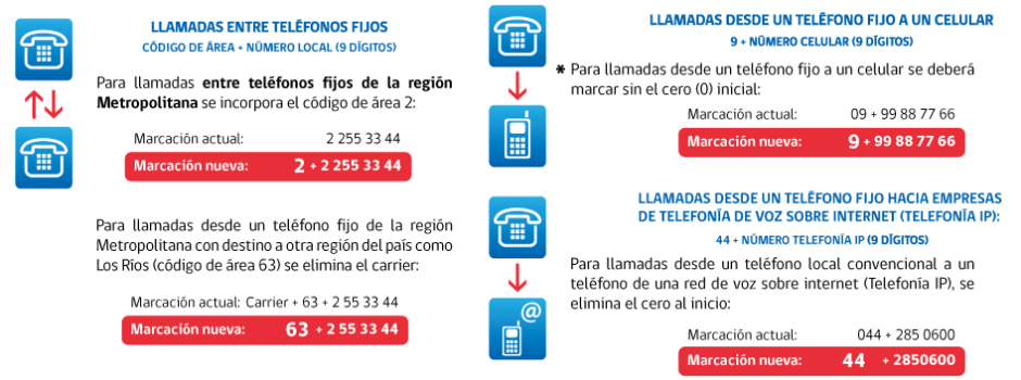 * En la región Metropolitana, los números de teléfono deben sumar un 2.