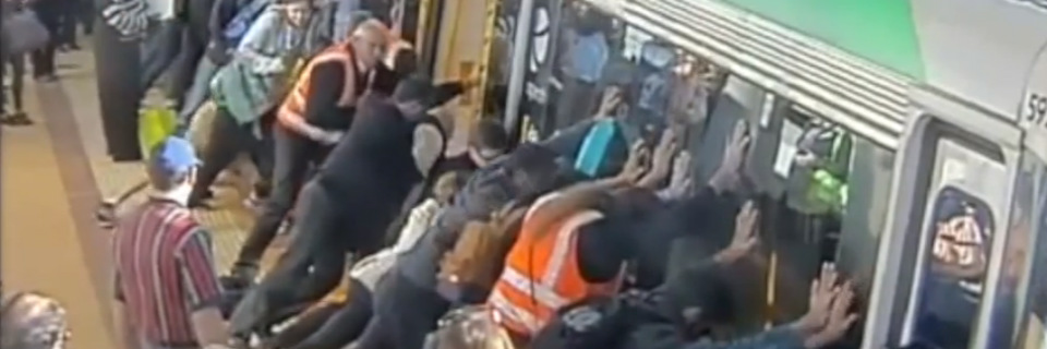 Este video fue difundido por la cadena de noticias australiana ABC. Lo curioso del suceso en el Metro de la ciudad de Perth, en Australia, es que el hombre no podía sacar la pierna y el carro no podía continuar su camino, por lo que los viajeros salieron del metro y comienzaron a empujar el tren para que el hombre pudiera sacar la pierna. Por suerte, todo quedó en sólo un susto y el hombre no tuvo ninguna lesión.