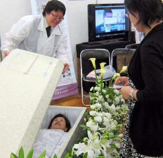 En ese evento la gente además puede probarse la ropa con la cual les gustaría ser enterrados y hasta recibir un maquillaje mortuorio… Y parece que el asunto va en serio: el festival convocó este año a más de cinco mil visitantes y 50 empresas estuvieron presente para ofrecer sus servicios, por lo que queda claro que la planificación propia de los funerales es un emergente mercado en Japón.