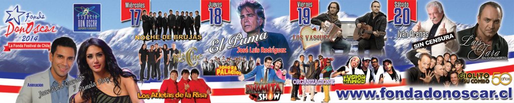 Con la animación de Juan Pablo Queraltó y Pamela Díaz, podrás ver a tus estrellas favoritas. Los Vásquez, Lucho Jara, Giolito y su Combo y hasta El Puma!, pisarán este escenario dieciochero.