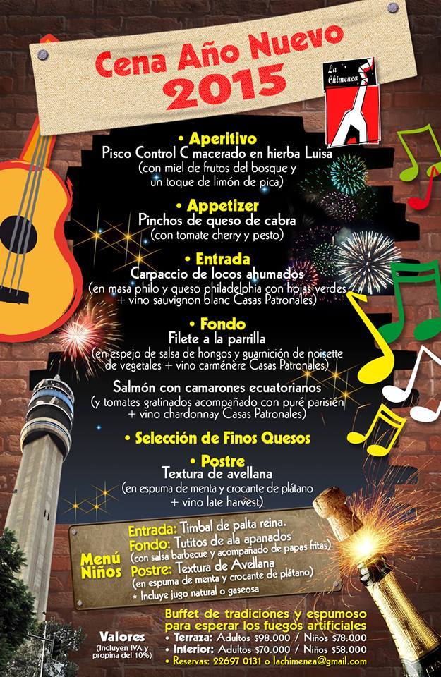Desde las 8 va a empezar con una cenita gourmet acompañada de cueca, payas y tango; después, vai a poder ver los fuegos artificiales de la Torre Entel en su azotea y, pa’ rematar, bailotear al ritmo de la Orquesta Pato Cobarde.