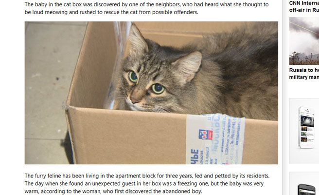 La ciudad rusa de Obninsk quizás debería considerar darle una distinción muy especial a una gata callejera llamada Masha, todo porque la minina salvó la vida de una guagua de 3 meses que fue abandonada y que antes que fuera encontrada por el animal, estaba a punto de sufrir hipotermia.