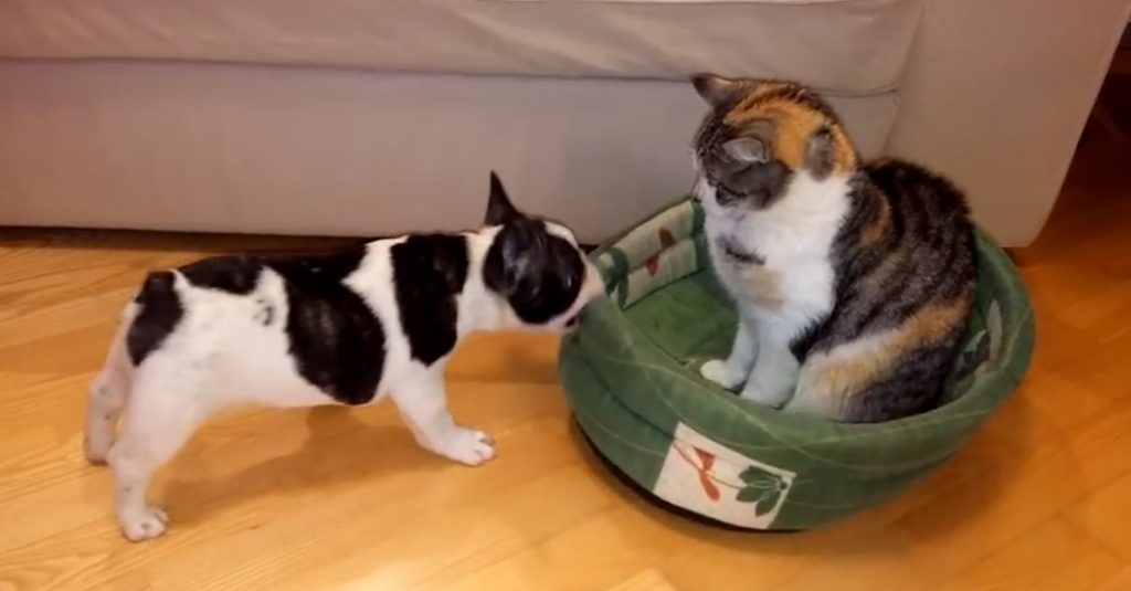 Aunque hay algunos que se llevan realmente bien, este videoes una muestra que los gatos y los perros es poco habitual que sean los mejores amigos… Y todo porque el minino ocupa la cama con toda tranquilidad, sin inmutarse, y por el contrario el cachupín- un cachorro de bulldog- intenta por todos los medios recuperar su territorio, incluso invitándolo a jugar, arrastrando la cama, ladrándole…pero se encuentra con un enemigo muy duro de roer.