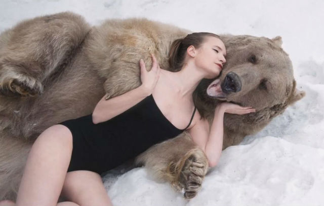 Las dos guapetonas aparecieron en una campaña contra la cacería de osos. Lo especial de la sesión fue que ambas debieron posar junto a uno de los animales que pesó 650 kg. Maria Sidorova y Lidia Fetisova no tuvieron miedo e incluso se dieron el lujo de regalonear con el mamífero.
