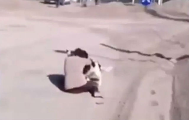 Ella, tras ver al perro, no contiene la emoción y entre lágrimas se dirige a abrazarlo. El animal también se muestra emocionado al reencontrarse con su amo. Un final feliz en medio de un difícil panorama.
