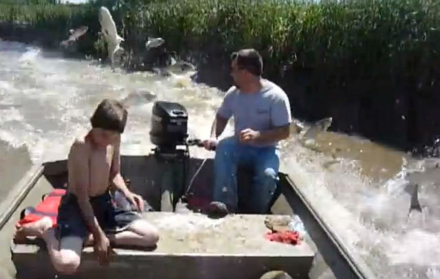Es el sueño de todo pescador: salir en el bote y que los peces lleguen solos sin tener que tirar la malla o el anzuelo de la caña de pescar. Eso le pasó a un grupo de amigos que se fue de paseo a un río en Illinois, Estados Unidos.