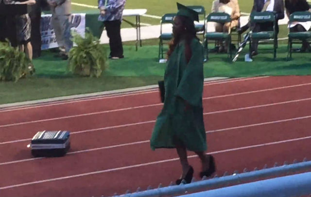Al año más de tres mil mujeres sufren un esguince de tobillo por andar con tacos. Una evitable lesión que esta chicoca en Estados Unidos no tomó en cuenta cuando quiso ir a recibir su premio por haberse graduado de la secundaria.