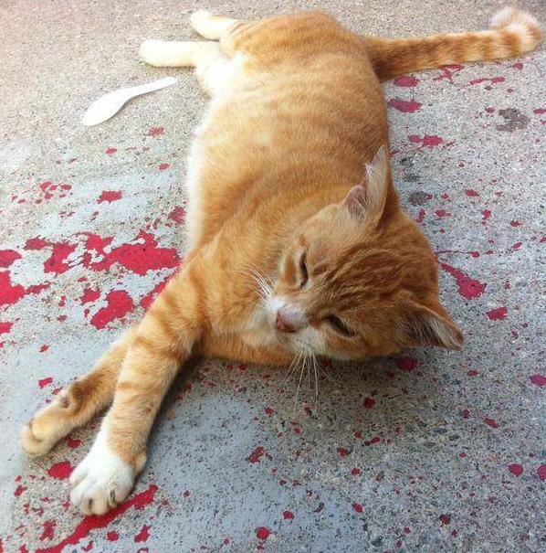 ¡¡Naca la pirinaca!! El gato sólo pegaba la pestaña de lo lindo sobre un charco de pintura. Menos mal, el cabro pasó del susto al alivio porque el animal estaba vivo y no perdió una de sus 9 vidas.