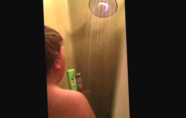 La sorpresa fue absoluta, el pobre Logan sólo gozaba de lo lindo al bailar y cantar bajo la regadera. Todo el mundo lo ha hecho y este cabro no será el primero ni el último.