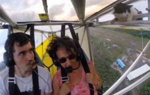 ¡Era el gato volador! No es que el cuchito tuviera alas, el animal apareció de la nada y, sin miedo, se puso a gozar de lo lindo con el paseo. El piloto se dio cuenta del invitado de piedra y de inmediato hizo el descenso para que el minino llegara sanito a tierra.