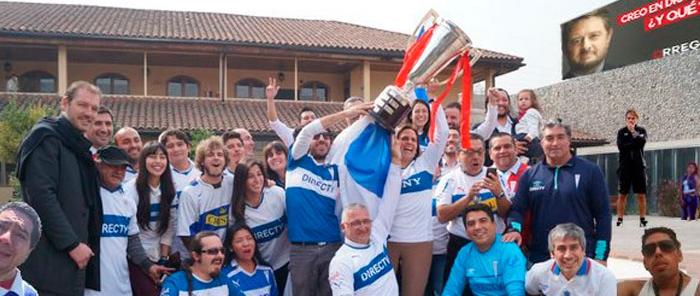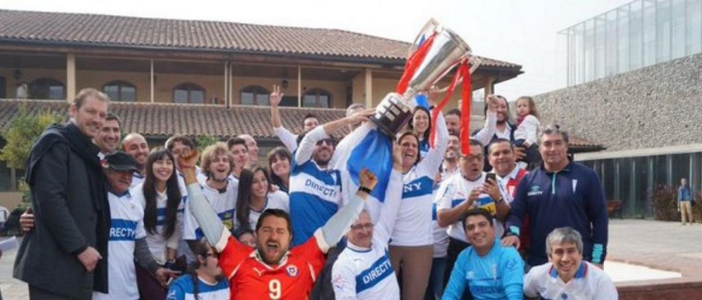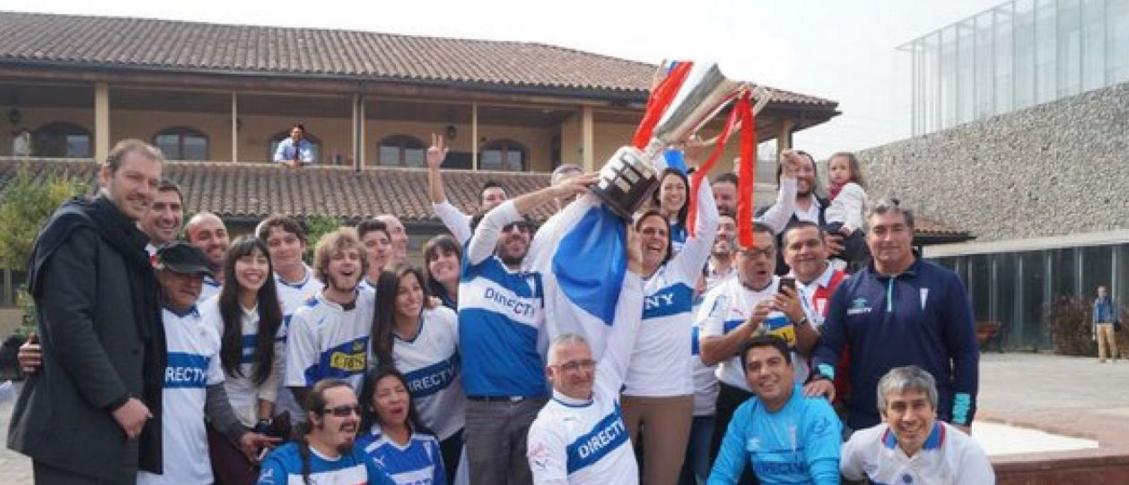 En la muni de Peñalolén está lleno de hinchas cruzados y para festejar el título de Universidad Católica, le pidieron al club que les mandara la copa del Torneo pa que los chiquillos se pudieran sacar una instantánea.