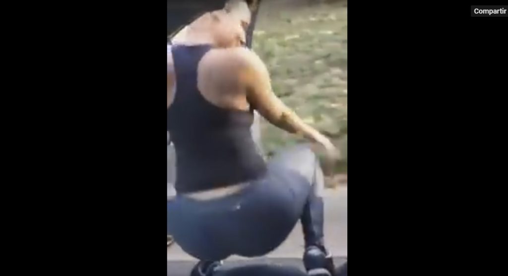 Eso sí la cabra se atrevió con un twerking más extremo, por lo que abrió la puerta del auto y comenzó a bailar, pero todo salió mal.
