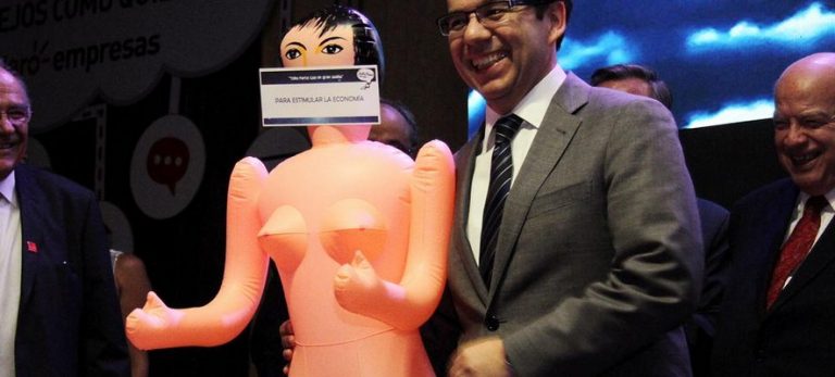 El presente era nada más ni nada menos que una muñeca inflable según él como símbolo del exhorto del sector productivo para “estimular la economía”.