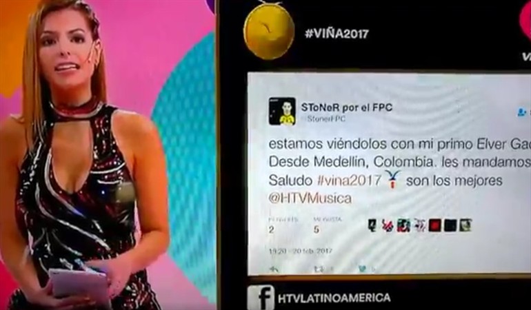 Animadora de #htvmusica envía saludo a Elver Gachica #vina2017 #viña2017 pic.twitter.com/XnKv4v6053