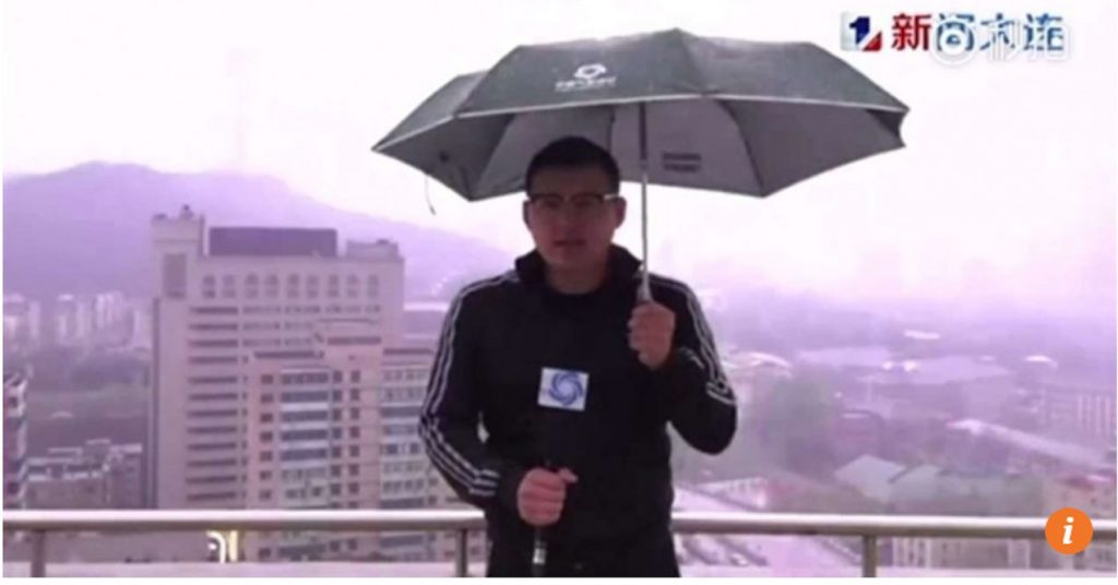 Un periodista chino mientras entregaba el informe del tiempo fue impactado por un rayo.