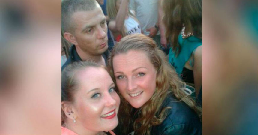 Las dos amigas asistieron a un concierto y para tener un recuerdo de ese buen bello día, decidieron inmortalizar el momento con una foto. Ellas sonríen y se ven felices en la imagen, sin imaginar lo que sucede detrás de ellas.