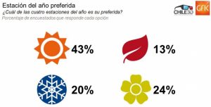 Una encuesta de GFK Adimark realizada a 4.800 personas de norte a sur quiso averiguar, cuál de las cuatro estaciones del año es la preferida.