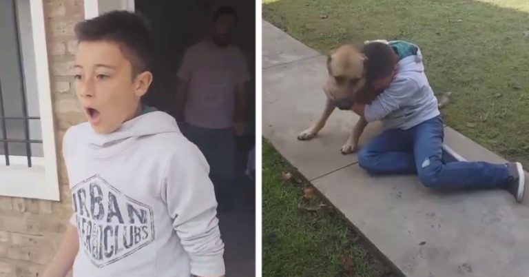 Rocco es un niño de aproximadamente 11 años que había perdido a su perro hace ocho meses. Sus familiares lo sorprendieron con la llegada intempestiva del can. El niño corrió a abrazarlo tras gritar su nombre y no pudo contener el llanto de emoción: