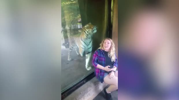 La mujer visitó el zoológico de Potawatomi, en Indiana y cuando se detuvo a mirar al animal este se acercó al cristal para llamar su atención.
