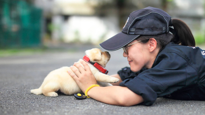 Los seis «nuevos reclutas» son unos cachorros que serán entrenados para formar parte de las unidades K-9 de Taipei, capital de Taiwán, encargadas de detectar bombas y drogas.