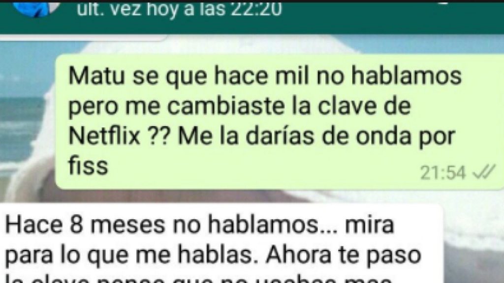 «Matu sé que hace mil no hablamos, pero ¿me cambiaste la clave de Netflix?? Me la darías de onda porfis«, así comienza el chat.